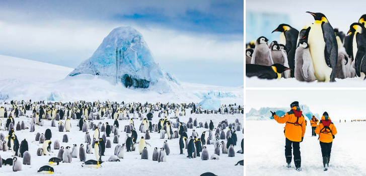 Located on sea ice, the Emperor rookery is situated some walking distance from the closest potential helicopter landing site (to not disturb the animals), so make sure you bring layered clothing suitable for covering the distance comfortably and additional layers to top-up whilst being more stationary at the colony.