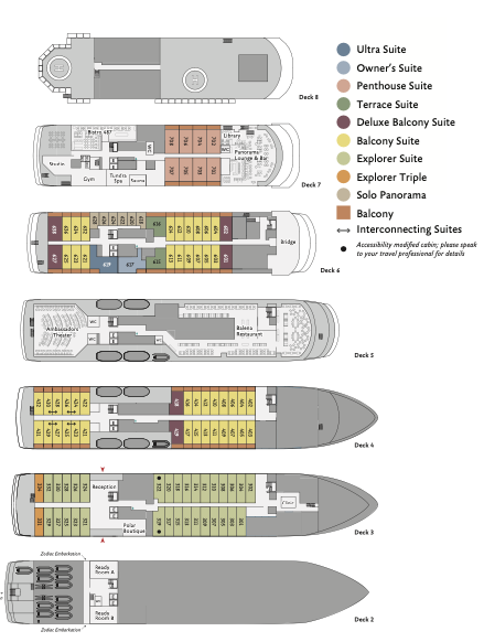 - The water-level Zodiac hangars enable quick-deploy Zodiac cruising, allowing us to enrich the guest experience and make the most of our time in the Weddell Sea.