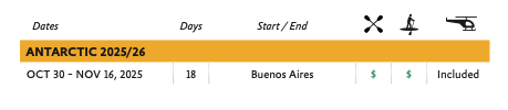 - Mandatory waterproof pants for Zodiac landing and cruising excursions, or any other gear not mentioned