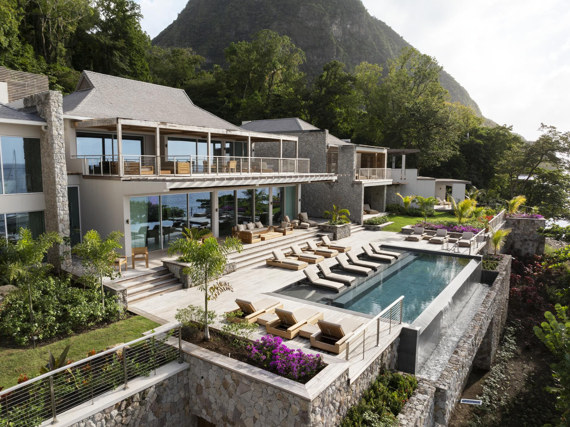 Spice of Life is a 35,000 sq. ft, nine-bedroom residence at Sugar Beach, A Viceroy Resort in St. Lucia, designed by Botelho Wood Architects. Nestled at the scenic convergence of rainforest and the iconic Piton Mountains, it can accommodate up to 18 guests or serve as an intimate retreat for two.